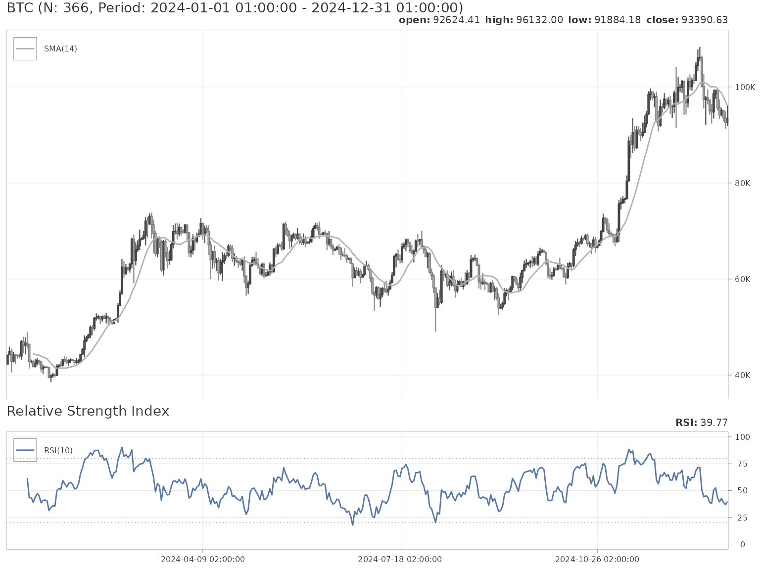Indicators with their own scale (e.g., RSI, MACD) are drawn in